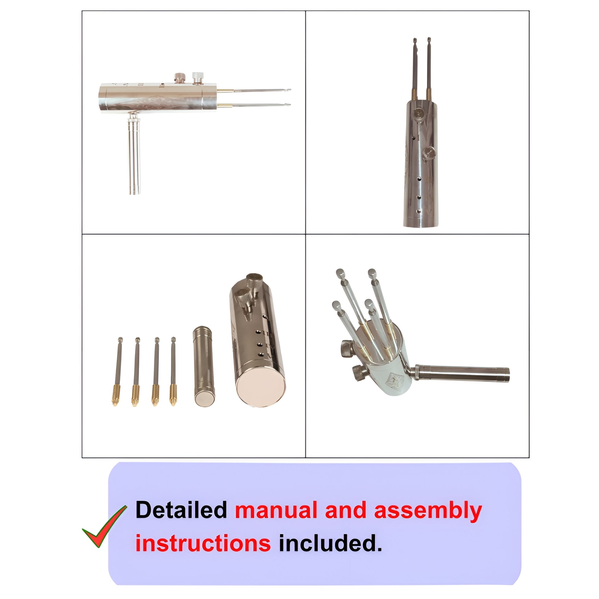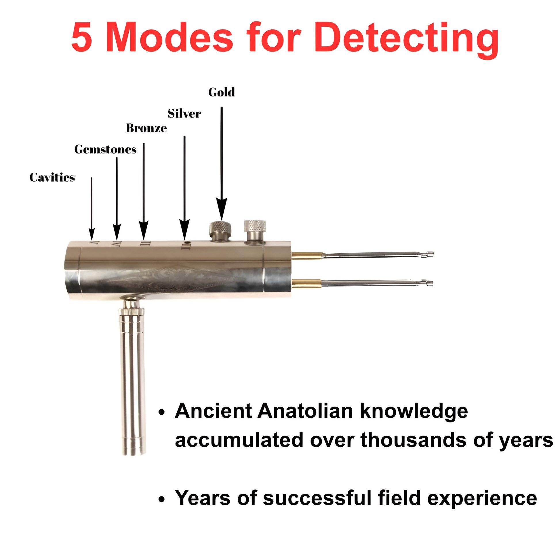 The device is made of high-quality components, especially conductive and magnetic materials that enable it to better receive emissions from buried precious metals (such as small or large amounts of gold or silver) over very long distances.